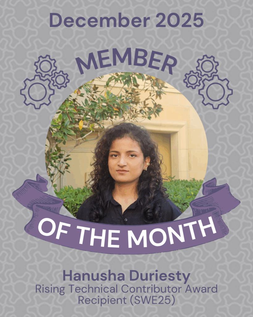 For December’s Member of the Month, we are recognizing four of our amazing members who received awards at the SWE WE25 Conference in New Orleans in October!