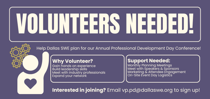 The Dallas Chapter of the Society of Women Engineers (Dallas SWE) is excited to begin planning our Professional Development Day Conference 2026, and we are forming a dedicated planning committee… [Continue Reading]