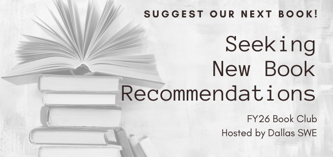 Voting is open for Dallas SWE Book Club’s next read! Submit your preference here and the next read will be announced at the meet up on Dec 6.