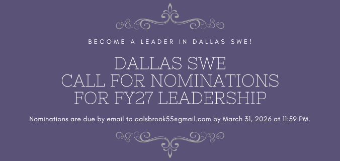 It’s that time of year again! Nominations for FY27 Dallas SWE Leadership are now open! Do you know someone whose expertise and values should be represented on the leadership team?… [Continue Reading]