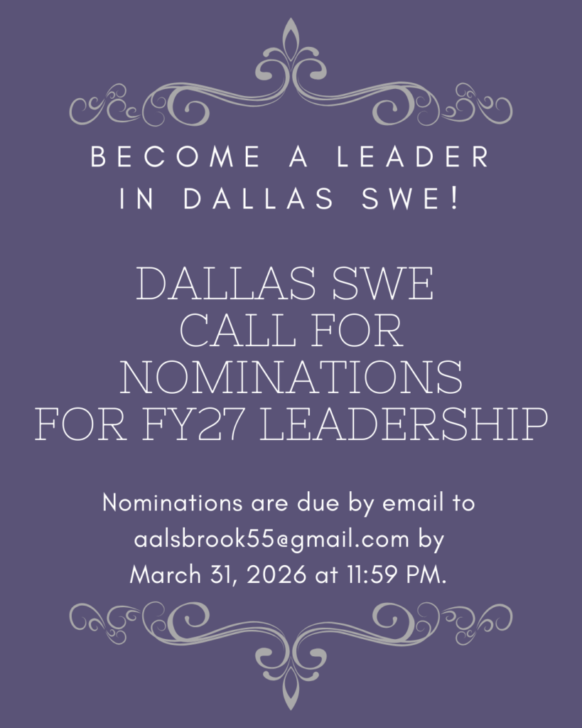 It’s that time of year again! Nominations for FY27 Dallas SWE Leadership are now open!