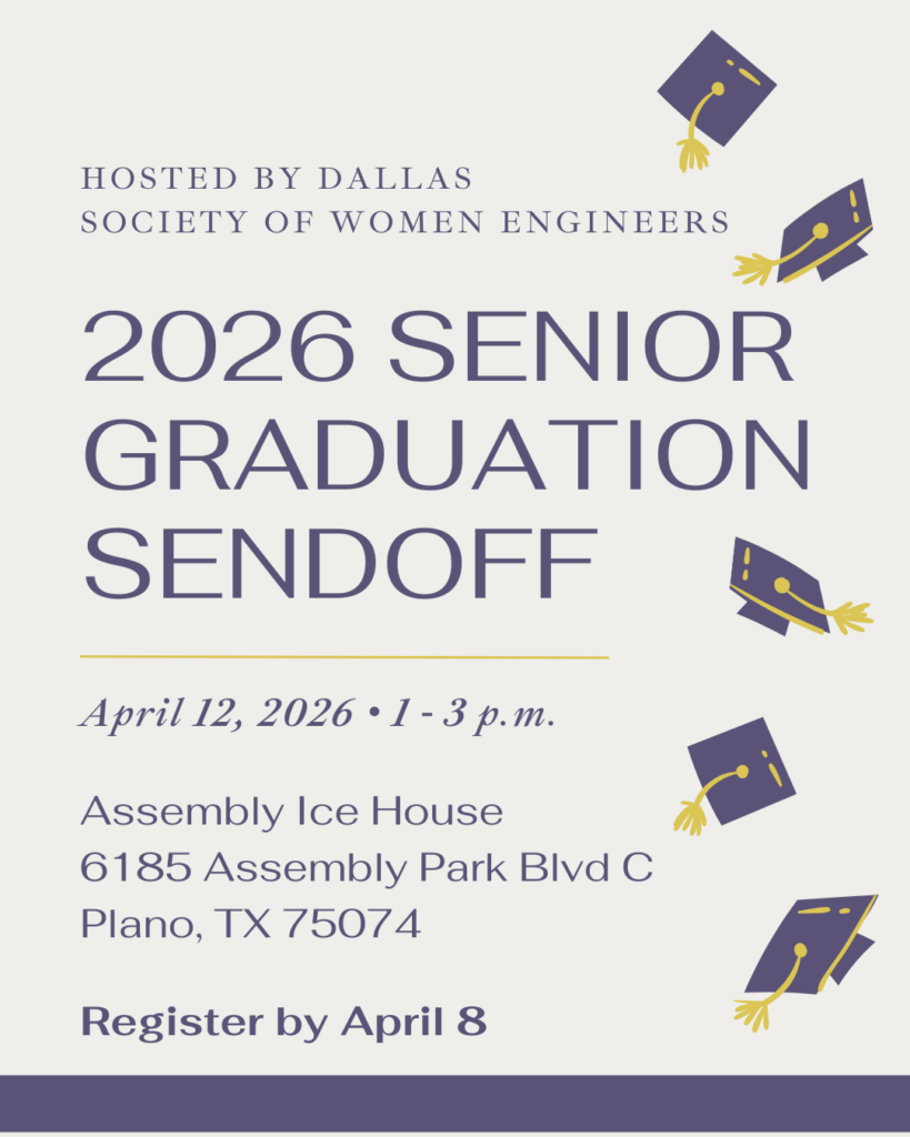 Join us in celebrating the seniors graduating from local collegiate sections of SWE! We will meet up on April 12 from 1-3 pm at Assembly Ice House Plano to enjoy some light bites and connect graduating seniors with Dallas SWE. This is a great opportunity for graduates to learn about how they can continue their SWE involvement in their professional careers! This event is open to collegiate members of all years as well as Dallas SWE professionals.